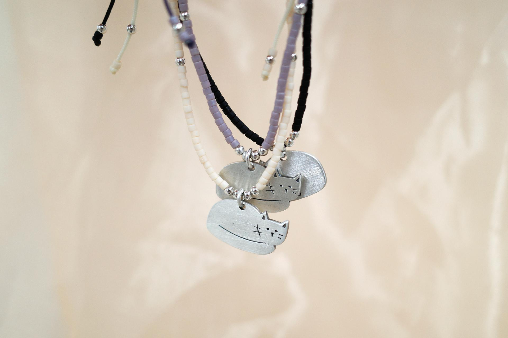 リラックスして休んでいる猫にちなんだペンダントで製作しました。